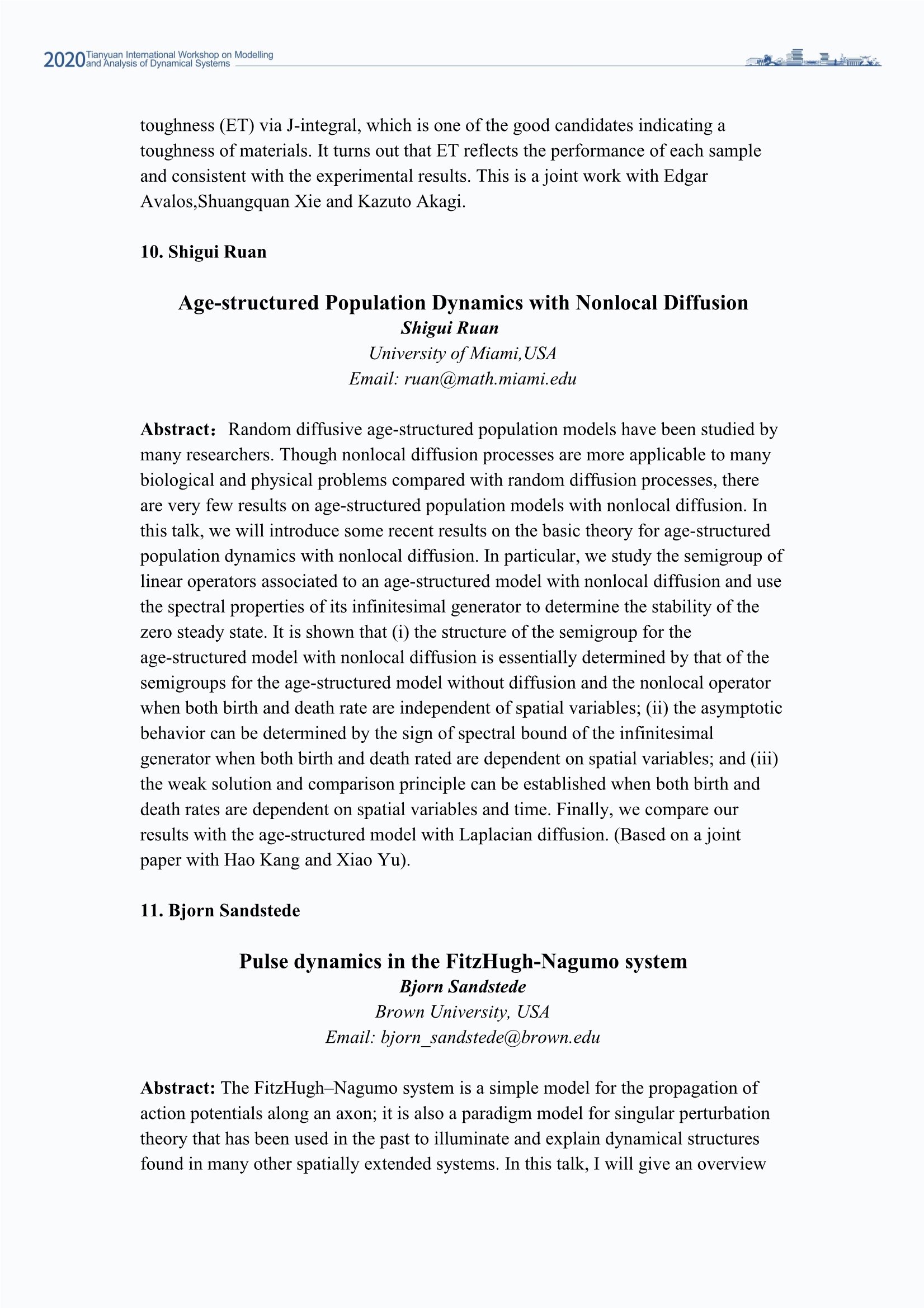 2020 Tianyuan International Workshop on Modelling and Analysis of Dynamical Systems